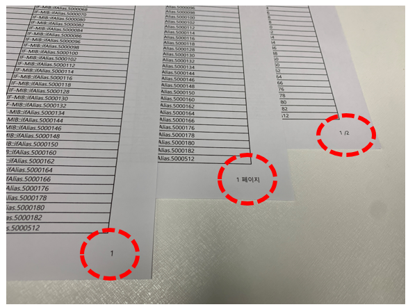 다음과 같이 전체 페이지 중에 현재 페이지를 표시하는 글자가 인쇄됩니다.