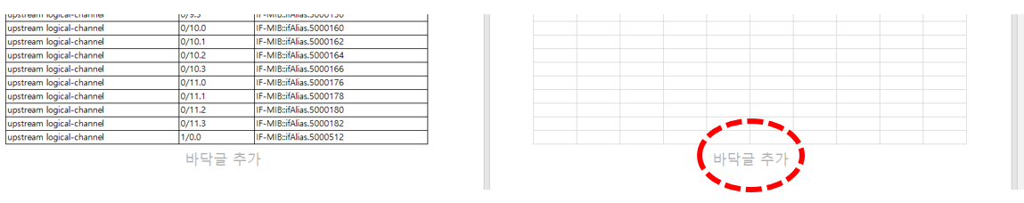 바닥글 추가에 마우스를 가져다 대면 보이지 않던 표가 나타납니다.