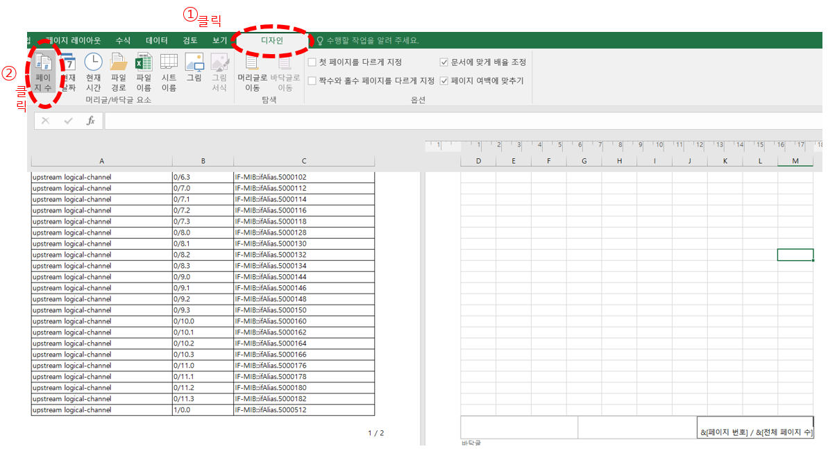 우선 &[페이지 번호] 라고 되어 있는 곳에서 / (슬래시)를 추가합니다.